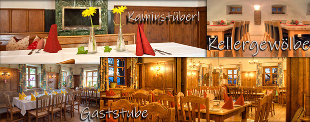 Unsere Gaststube bietet 95 Plätze, das Kaminstüberl 35 und das Kellergewölbe 20 Plätze.